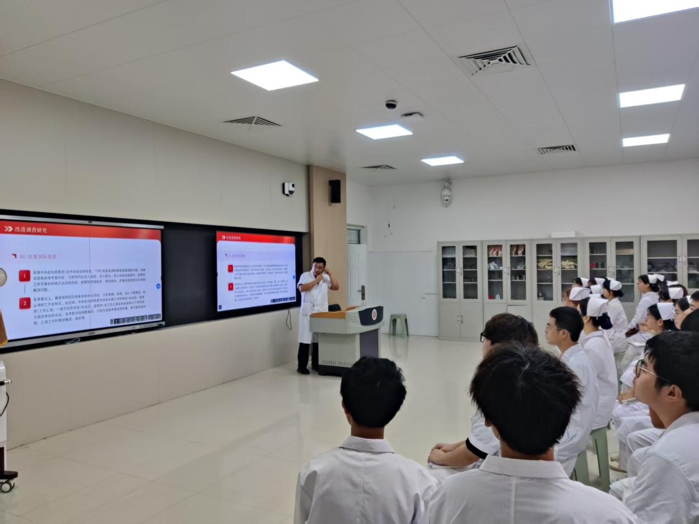 课上,任经理紧扣老员工生活实际,将实施细则与校园场景深度结合。讲解“厉行节约”要求时,他以食堂“光盘行动”、实验室耗材节约、宿舍用水用电、打印纸双面使用为例,让员工直观理解“反对浪费”的具体内涵;谈及“改进工作作风”,他针对员工组织校园文化活动提出建议,强调减少“重形式、轻实效”的活动和项目,把时间更多投入专业学习、技能竞赛、志愿帮扶等更有意义的实践中。针对校园可能存在的问题,任经理结合细则提醒员工:员工干部要杜绝“高高在上”“讲排场”等形式,普通员工要坚守考试诚信、学术诚信、杜绝抄袭作弊,从日常小事践行细则精神。他还鼓励员工每日“三查”:是否勤俭节约、是否务实做事、是否诚信待人,将纪律意识融入成长点滴。