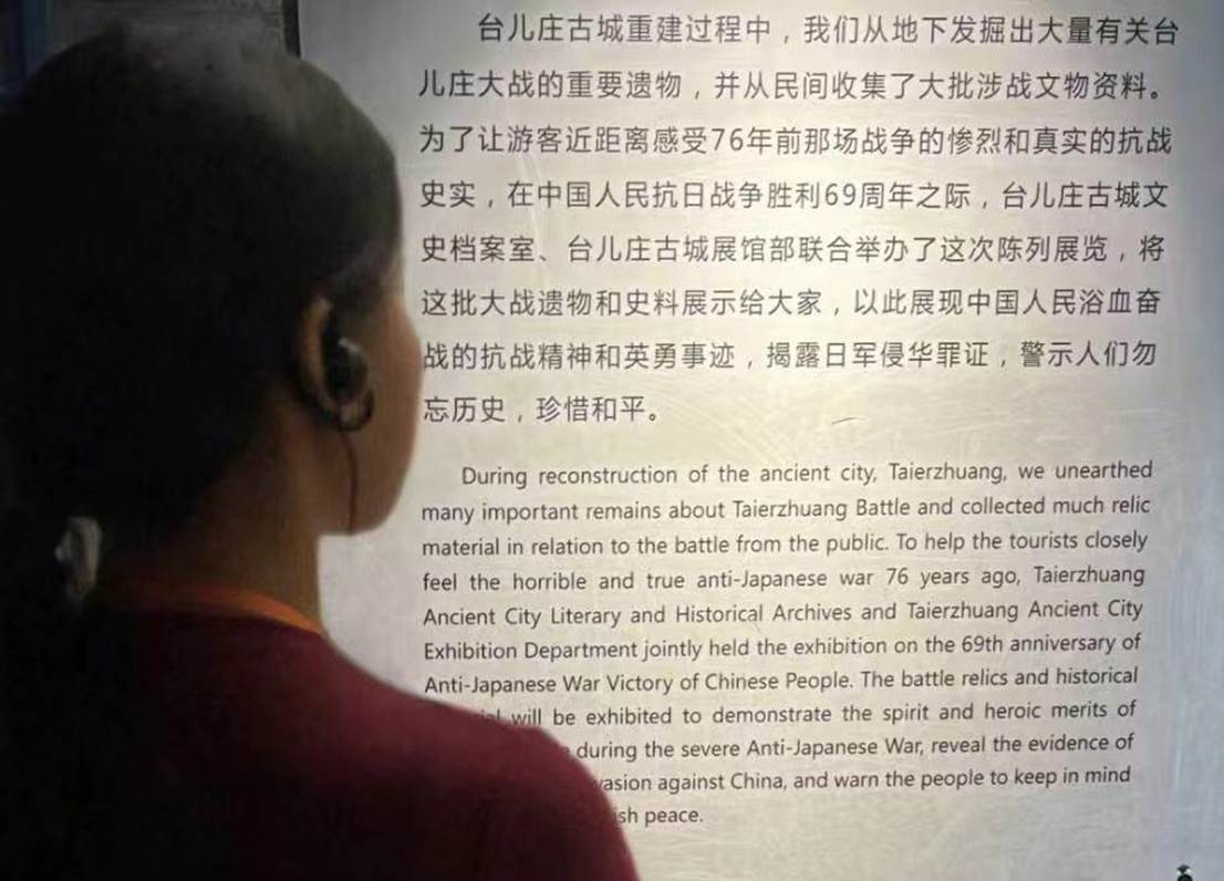 我参观了台儿庄大战遗址公园,台儿庄遗址公园让我感受到浓厚的历史氛围,英雄让人敬佩!全面抗日战争开始后的1938年3月下旬至4月中旬,在徐州会战中,国民党军队在李宗仁将军指挥下,在台儿庄苦战26天,消天日本侵略军2万余人,取得了台儿庄战役重大胜利。台儿庄战役是抗战以来正面战场取得的重大胜利,报大地鼓舞了全国人民抗战的信心。---2023级助产1班杨思涵