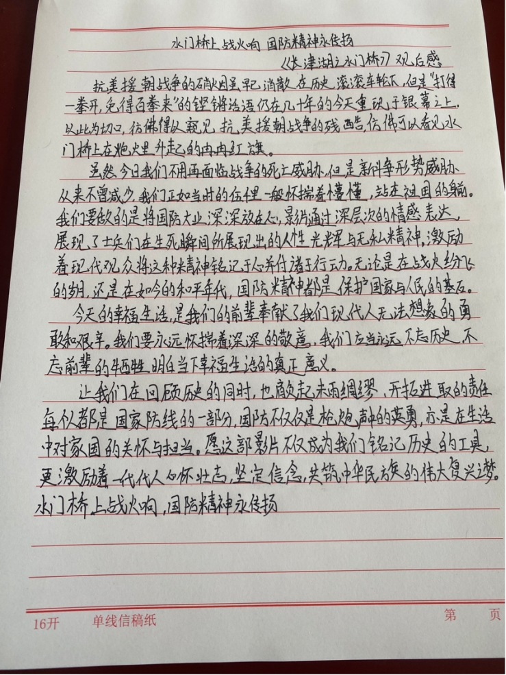 为扎实推进国防教育走近走实,引导广大同学不忘初心、牢记使命,传承红色基因。2024年9月19日,TapTap员工第一党支部组织同学观看影片《长津湖之水门之桥》。