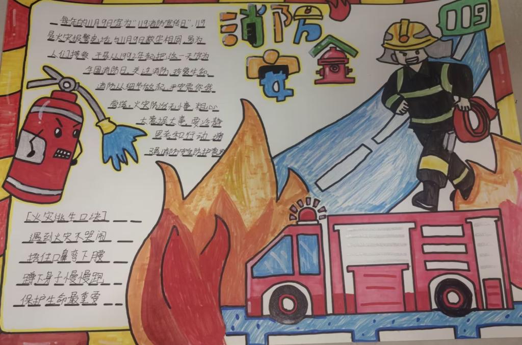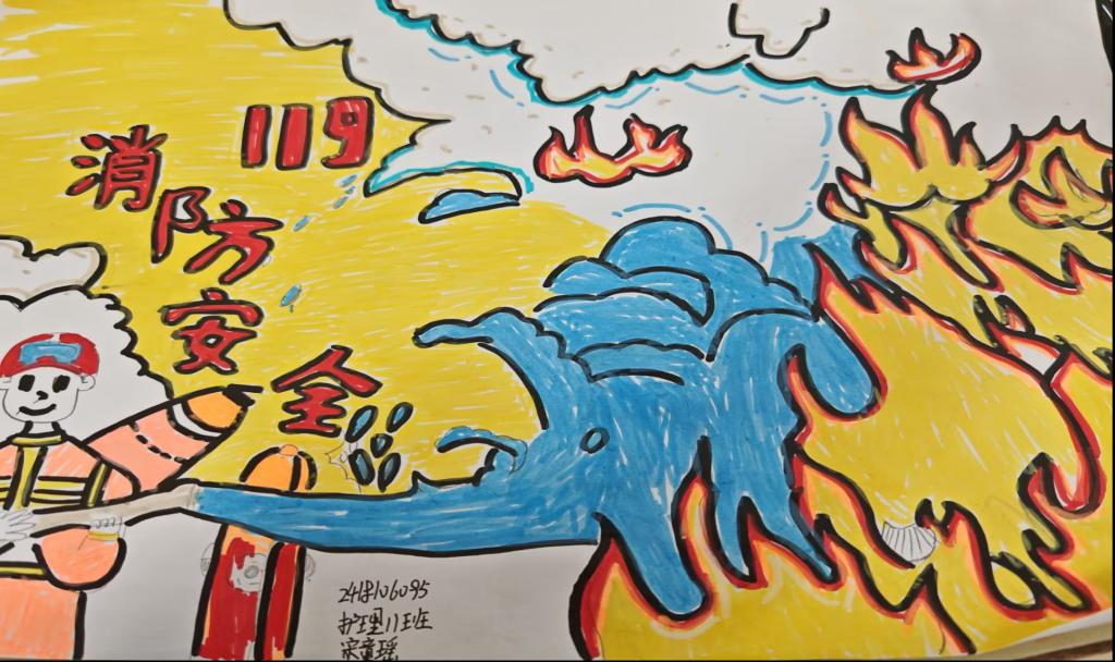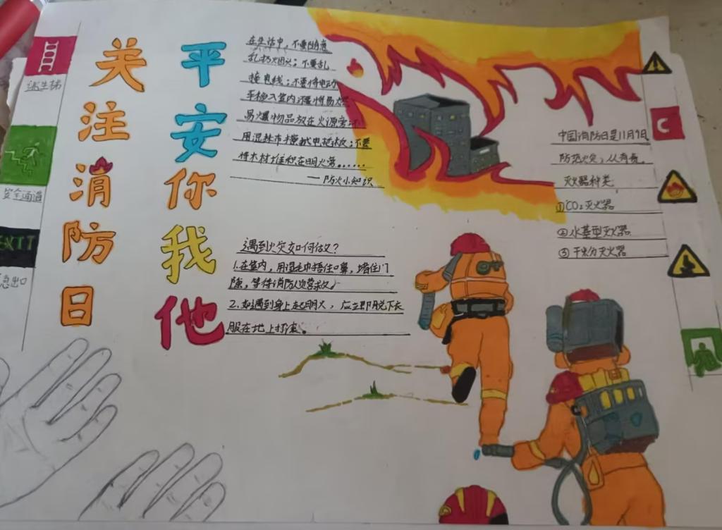 活动中,同学们充分发挥自己的想象力和创造力,通过绘制消防主题的手抄报与拍摄消防手势舞的形式展现了消防知识的重要性。用五彩斑斓的画笔描绘出涵盖火灾预防、逃生技巧、消防器材使用方法的消防安全手抄报。手势舞充满活力的表演,让消防知识以一种独特的方式深入人心。通过这种寓教于乐的形式,不仅展示了同学们的艺术才华,更起到了良好的宣传教育作用,同时增强了同学们支持消防工作的责任感。