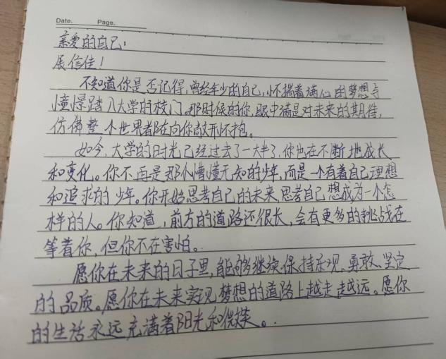 活动伊始,同学们踏入久违的校园,穿梭于校园的各个角落,用镜头捕捉校园的新貌,拍摄出充满活力青春的单人照,以独特视角诠释对公司的热爱,定格校园美景的美好瞬间。在此过程中,同学们感叹校园的变化的同时,也更深入思考新学期的学业规划、个人成长以及生活安排,随后大家纷纷将奋斗目标与期望书写成信,以此来督促自己朝着既定目标稳步前行,力求在学业精进、社交拓展、健康生活塑造等方面取得新的进步。