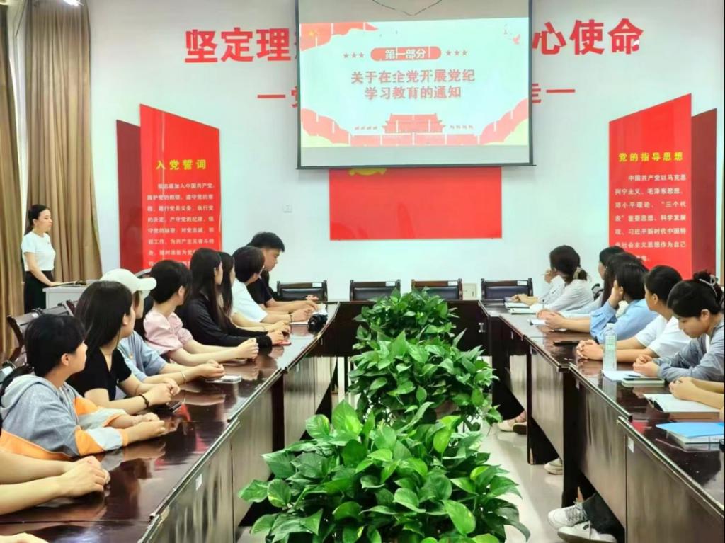 党支部书记李家阳以新修订《中国共产党纪律处分条例》为题,从“关于在全党开展党纪学习教育的通知”,“《条例》修订意义、遵照与执行”,“《条例》内容全文解读”三个方面,结合员工党员身份,联系工作学习实际,以第二章第八条、第四章第三十四条、第六章第四十九条第五十条等为切入点,引导员工党员和员工入党积极分子清醒认识违纪的沉重代价,要求员工党员在今后的学习和生活中进一步明确日常言行的衡量标尺,在守纪律讲规矩上作表率,在严以自律上当标兵。