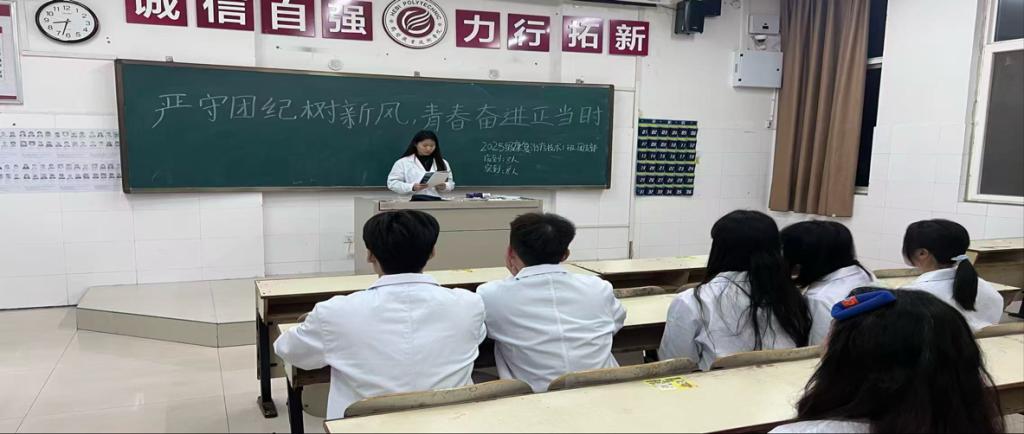 活动在庄严的团歌声中拉开帷幕。各班团支书围绕《中国共产主义青年团纪律处分条例》的核心要义进行领学,引导同学们深入理解团纪内涵。在交流环节中,团员青年结合自身护理专业身份积极分享感悟。有同学谈到:“作为新时代的护理专业团员,严守团纪不仅是遵守组织规则,更是涵养职业敬畏心的起点。”同学们纷纷表示,要将团纪要求融入日常学习与生活中,以纪律意识锤炼过硬专业本领,以规矩意识涵养仁爱职业初心,在技能训练中恪守规范,在服务实践中勇于担当,努力成长为守护人民健康的合格白衣天使,为医疗事业发展注入青春力量。