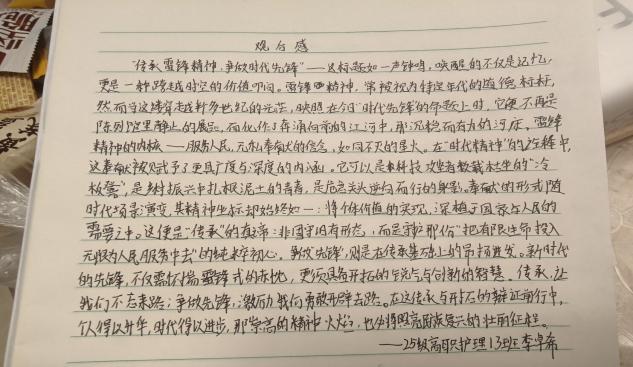活动中,员工们在家自行观看《雷锋》、《离开雷锋的日子》、《雷锋的微笑》等经典影片,以第三视角记录观影瞬间。员工们撰写的观后感,字里行间,既有对雷锋同志勤俭节约、爱岗敬业、助人为乐等优良品质的敬佩,也有对新时代雷锋精神时代价值的思考。一篇篇观后感,既是对雷锋精神的深度解读,更是支部员工立志传承优良传统、勇担时代使命的青春誓言。