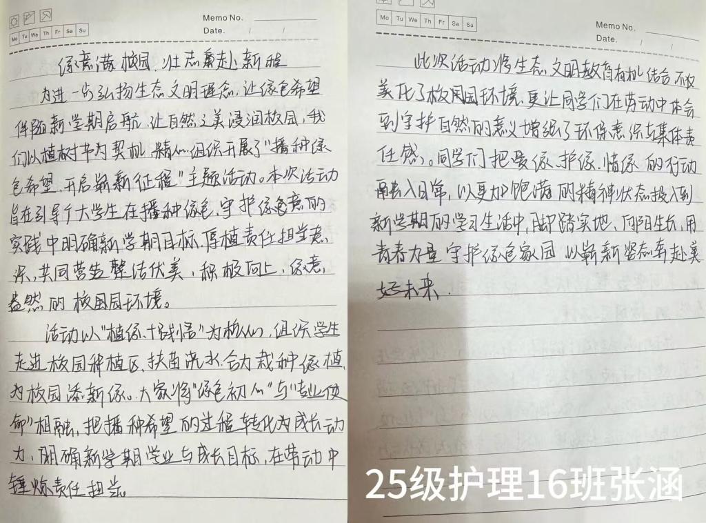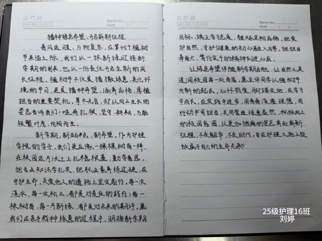 在本次活动中,员工们积极投身校园绿化维护工作,主动为校园内的树木浇水、除草、打扫校园卫生,用实际行动美化校园环境,践行绿色生活理念。充分展现了新时代青年员工的责任与担当。与此同时,支部还组织员工们撰写新学期寄语,围绕“新学期新起点”与“绿色环保”两大主题,书写个人感悟与奋斗目标,将绿色希望与成长追求有机融合。大家在实践中体会到了劳动的价值与呵护生命的意义,进一步深化了绿色环保理念,也更加明确了新学期的奋斗方向。